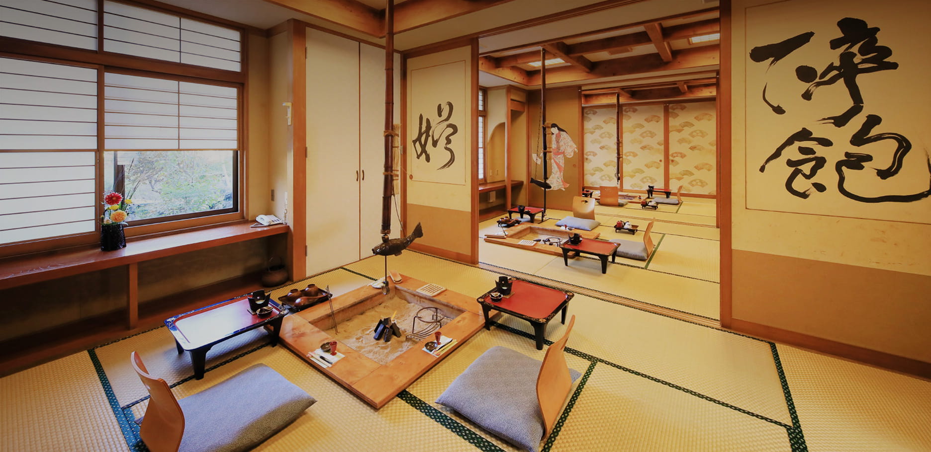 囲炉裏を囲んで楽しむ、
