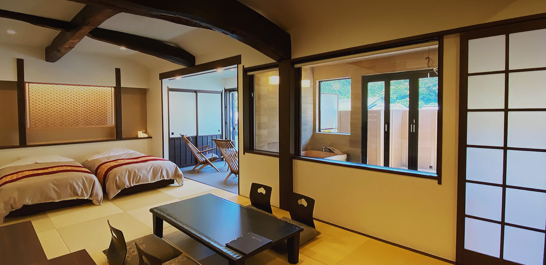 四季を感じる庭園を眺めながら、旅の疲れをしっかりとほぐします。